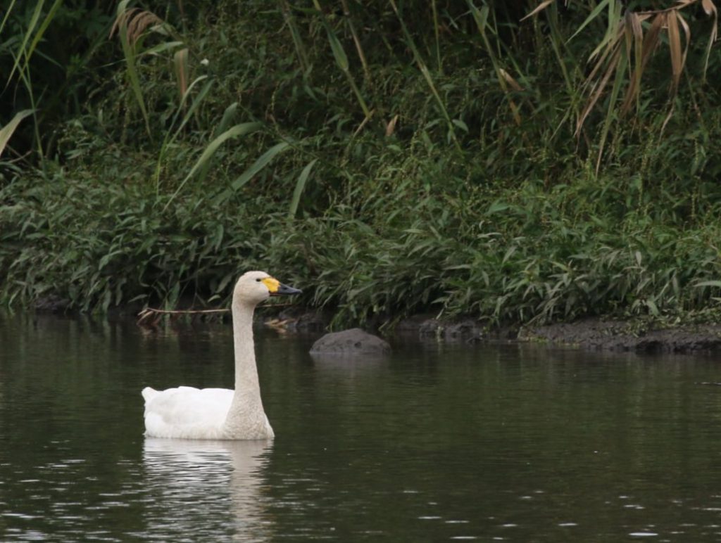 10月14日(水)冬の風物詩コハクチョウが菅生沼に渡来しました。菅生沼はハクチョウの越冬場所として知られ、時期によっては300羽を超えるハクチョウを観察することができます。