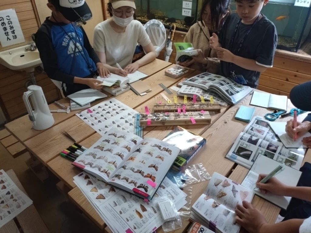 どの学年も参加者たちは和名を調べる際に見た目や雰囲気ではなく、図鑑解説を熟読し識別点をメンバーで共有し、参加者全員が納得できた種名を記載しています。いきもの調べの後も、同定会では採集してきた個体の類似種を想定し納得するまで調べます。必要に応じてWEBを使用したり有識者がサポートしますが、基本的に過去図鑑を引いたことが無い未経験探検隊の多くがゼロから調べています。決められた時間は、観察することも楽しみつつメンバー全員が「新しい記録を作っていこう!」という強い意志で取り組んでいます