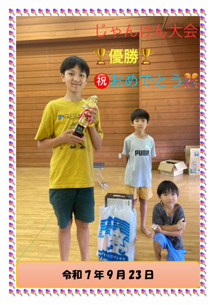 2025年9月25日 / 最終更新日時 : 2025年9月27日 aa142ro5wy イベント 9月23日に開催した【じゃんけん大会】 86名の方々、ご参加ありがとうございました😄 また来年もご参加よろしくお願いします✨ そして、優勝おめでとうございます🤩